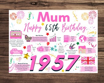 65th Birthday Card For Mum Birthday Card For Her Happy 65th Etsy
